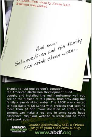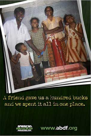 As shown above, the ABDF.org postcard does a similar thing, but this time it uses one element, the snapshot or photo as if it were real and flips it over to serve an additional purpose. The effect is one of looking at an actual photograph lying on a tabletop.